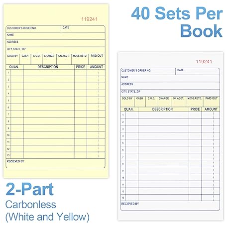 Sản phẩm Joyberg 4 Pack Receipt Book, 4.17inx7.2in Receipt Book with Carbon Copies, 2-Part Carbonless(White and Yellow), 40 Sets Per Book, Order Book for Small Business đang được bán với giá ưu đãi là $6.5291 tại nước Mỹ.