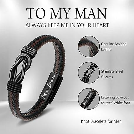 Thương hiệu JoycuFF là cái tên nổi tiếng được rất nhiều khách hàng trên thế giới chọn lựa. Với kiểu dáng đẹp mắt, sang trọng, sản phẩm JoycuFF 𝗞𝗻𝗼𝘁 𝗕𝗿𝗮𝗰𝗲𝗹𝗲𝘁 𝗚𝗶𝗳𝘁𝘀 𝗳𝗼𝗿 𝗠𝗲𝗻 Brown Braided Leather Stainless Steel Infinity Bracelets Lettering Love You Forever Gifts for Son Grandson Husband Boyfriend Brother Always Linked Together là sự lựa chọn hoàn hảo nếu bạn đang tìm mua một món cho riêng mình.