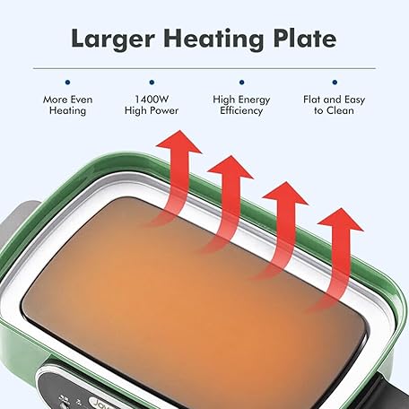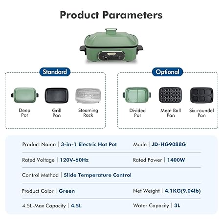 Thông tin sản phẩm JOYDEEM 3-in-1 Electric Hot Pot, Multi-use Shabu Shabu Pot with Grill Pan & Steamer, Non-stick Ceramic Oil Coating, UL Listed, JD-HG9088G, Green