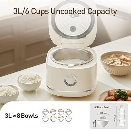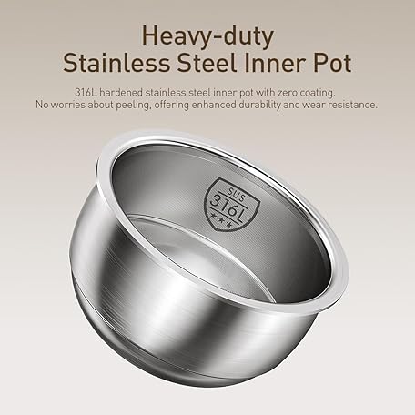 Thông tin sản phẩm JOYDEEM Stainless Steel Rice Cooker, Uncoated Non-stick 316L Stainless Steel Inner Pot Rice Cookers, 6 Cup Uncooked, 3L/3.2 qt, DFB-D300