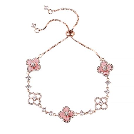 JOYEAR Red Clover Bracelet,Gold Plated Clover Copper Bracelet Shining 18K Gold Plated Jewelry for Women Gifts