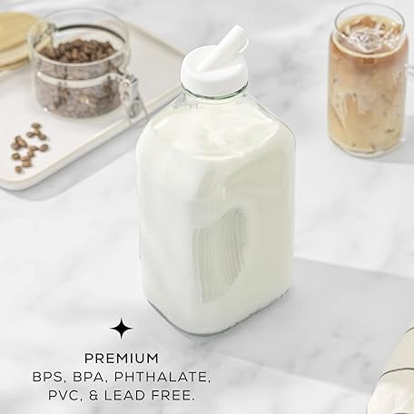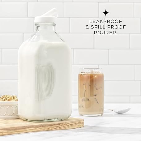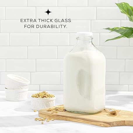 Thông tin sản phẩm JoyJolt Glass Milk Bottles with Lids and Pourer – 64 Oz, 3 Pack Airtight Heavy Duty Reusable Glass Bottles, Leakproof, BPA-Free, Food Grade, Dishwasher Safe Jug, Pitcher for Milk, Juice, and Water