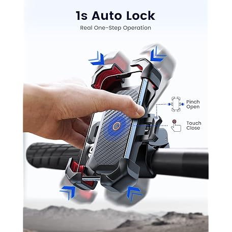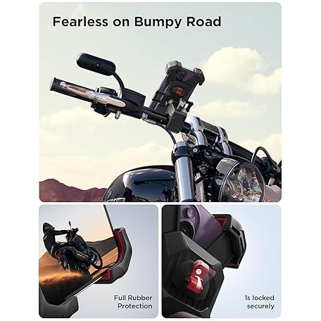 Thông tin sản phẩm JOYROOM Motorcycle Phone Mount, [1s Auto Lock][100mph Military Anti-Shake] Bike Phone Holder for Bicycle, [10s Quick Install] Handlebar Phone Mount, Compatible with iPhone, Samsung, All Cell Phone