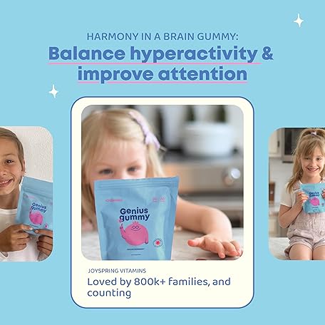 JoySpring Genius Kids Focus Gummies – Natural Herbal Brain Supplement for Kids | Vegan, Gluten-Free, Sugar-Free with Bacopa, Gotu Kola, Rhodiola – 60 Count