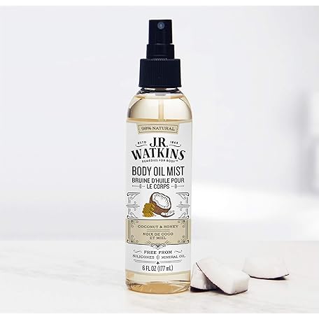Thông tin sản phẩm JR Watkins Natural Hydrating Body Oil Mist, Coconut Milk & Honey, Moisturizing Body Oil Spray for Glowing Skin and Cruelty Free, 6 fl oz