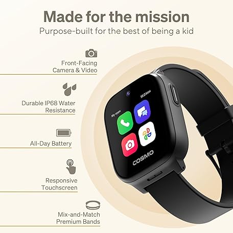Thông tin sản phẩm JrTrack 5 Kids Smart Watch by Cosmo | Best Kid-Safe Phone Watch | Precision Real-Time GPS Tracking | Call, Text, Activity, School Settings | Spotify Music | Parental Controls | SOS & Safety Alerts