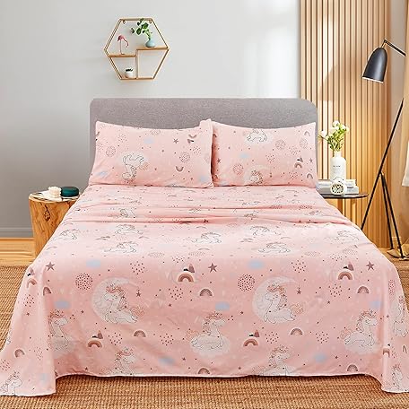 Sản phẩm JSD Pink Unicorn Kids Sheet Set Twin Size, 3 Piece Girls Rainbow Printed Microfiber Bed Sheets Deep Pocket đang được bán với giá ưu đãi là $21.7891 tại nước Mỹ.