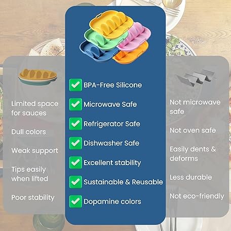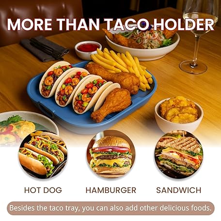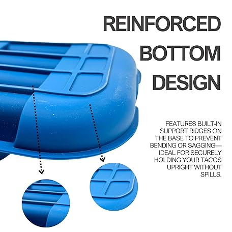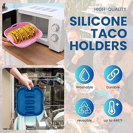 Juglok Microwave Safe Taco Holder Set of 2 – Reusable Silicone Taco Tray with Dividers for Hard/Soft Taco Shells, Holds 4 Tacos Each, Oven & Dishwasher Safe (blue+green)