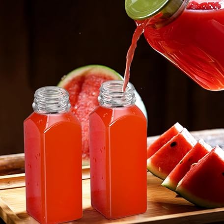 Juice Bottles - 8oz Bottles with Lids, 12 pcs Plastic Juice Containers with Caps Reusable Drink Containers for Juice Milk Coffee Water Smoothie and Other Beverages,Christmas gift
