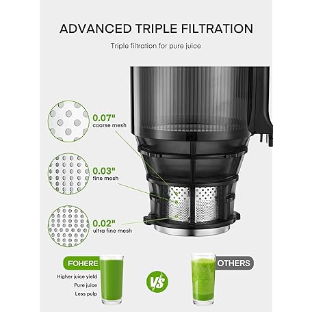 Thương hiệu FOHERE là cái tên nổi tiếng được rất nhiều khách hàng trên thế giới chọn lựa. Với kiểu dáng đẹp mắt, sang trọng, sản phẩm Juicer Machines, 5.4" Extra Large Feed Chute Fit Whole Fruits & Vegetables, Slow Masticating Cold Press Juicer Easy to Clean, 250W, High Juice Yield là sự lựa chọn hoàn hảo nếu bạn đang tìm mua một món cho riêng mình.
