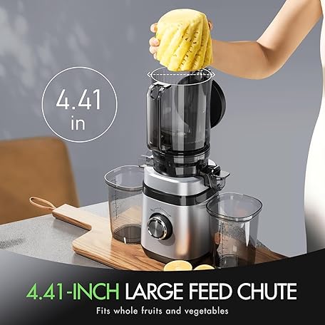 Thông tin sản phẩm Juicer Machines, Cold Press Juicer with 4.41" Wide Feed Chute, 350W Slow Masticating Juicers for Whole Vegetables & Fruits, High Juice Yield, Easy to Clean, Large Auger, Silver