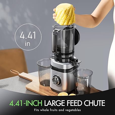 Thông tin sản phẩm Juicer Machines, Cold Press Juicer with Wide Feed Chute, Slow Masticating Juicers for Whole Vegetables & Fruits, High Juice Yield, Easy to Clean, Large Auger, Light Silver