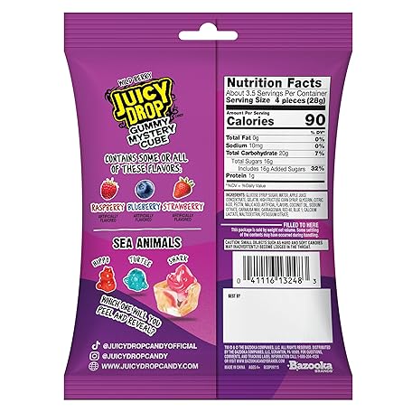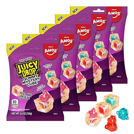 Sản phẩm Juicy Drop Christmas Mystery Gummy Candy Cubes, Wild Berry Flavor, 3.5oz, Peelable Strawberry Gummy Cube, Mystery Animal Inside, Interactive 2-in-1 Treat, Party Favors, Stocking Stuffers, Kids Gifts đang được bán với giá ưu đãi là $15.369 tại nước Mỹ.