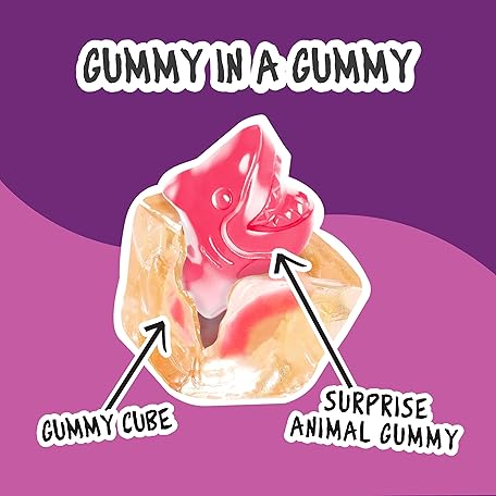 Thông tin sản phẩm Juicy Drop Christmas Mystery Gummy Candy Cubes, Wild Berry Flavor, 3.5oz, Peelable Strawberry Gummy Cube, Mystery Animal Inside, Interactive 2-in-1 Treat, Party Favors, Stocking Stuffers, Kids Gifts