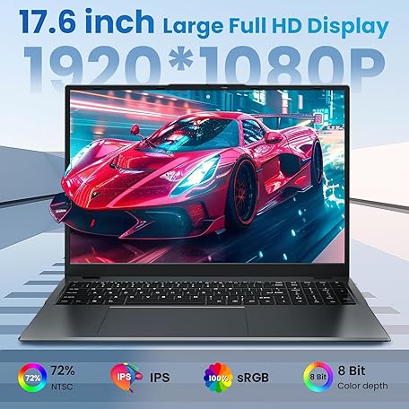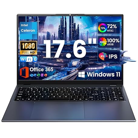 jumper 17.6 Inch Laptop, 1 Year Office 365, Laptop Computer with 16GB RAM, 512GB SSD+128GB Storage, Windows 11 Laptop, Celeron N95 Processor, 100% sRGB FHD Display, WiFi6, BT5.2, Backlit Keyboard