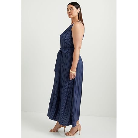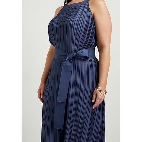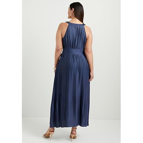 June + Vie Women's Plus Size Pleated Halter Maxi Dress