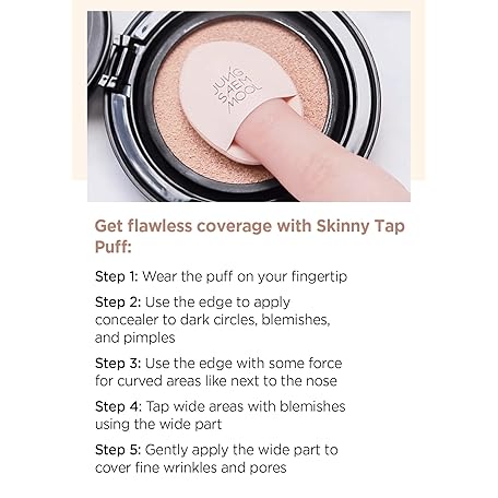 Thông tin sản phẩm JUNG SAEM MOOL Skinny Tap Puff 3pcs, Mini Precision Puff for Concealer and Touch-Up, Ultra-Slim Fitting Makeup Sponge for Seamless Coverage Around Nose Eyes Lips, Travel-Friendly Korean Beauty Tool