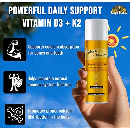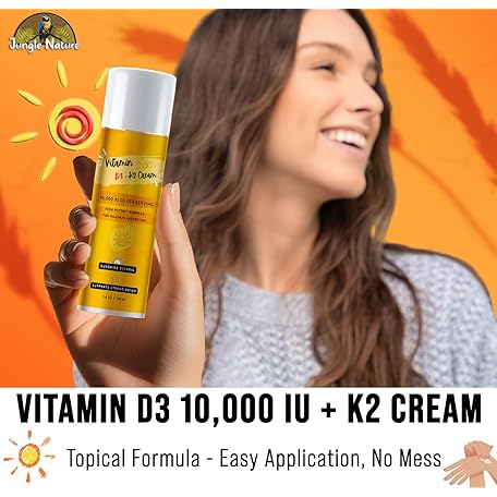 Thương hiệu Jungle Nature là cái tên nổi tiếng được rất nhiều khách hàng trên thế giới chọn lựa. Với kiểu dáng đẹp mắt, sang trọng, sản phẩm Jungle Nature - Vitamin D3 10,000 IU with K2 Cream (3.4oz) – High-Potency, Fast-Absorbing Formula – Enriched with Magnesium, Vitamin E, MSM, Non-Greasy & Paraben-Free. là sự lựa chọn hoàn hảo nếu bạn đang tìm mua một món cho riêng mình.