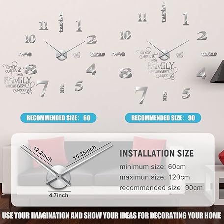 Sản phẩm Junkin 3D Large Frameless DIY Wall Clock Modern Decor Family Quote Wall Stickers Clock Kit for Home Living Room Bedroom Office Decorations Adjustable Size(Silver) đang được bán với giá ưu đãi là $23.9691 tại nước Mỹ.