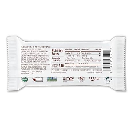 Thông tin sản phẩm Justin's Organic Almond Butter Cups, Dark Chocolate, Rainforest Alliance Certified Cocoa, Gluten-free, Responsibly Sourced, 1.4 Ounce (Pack of 12)