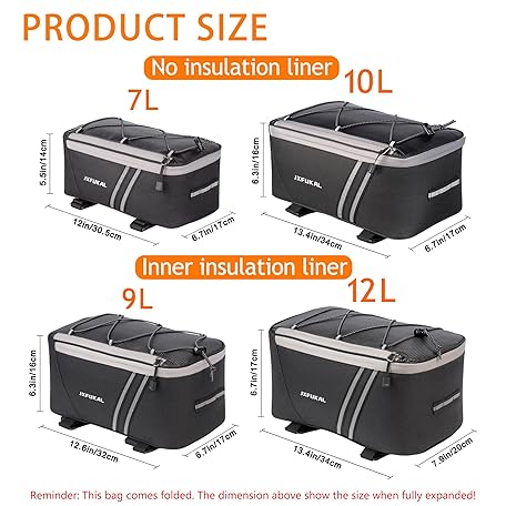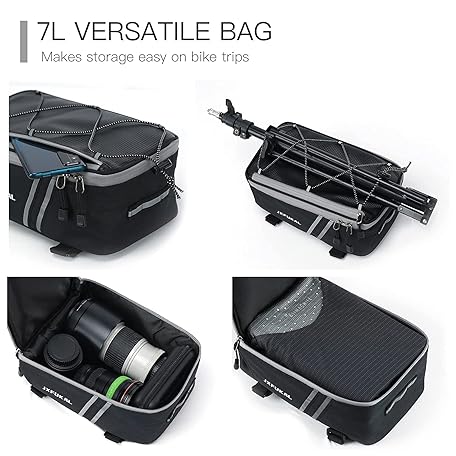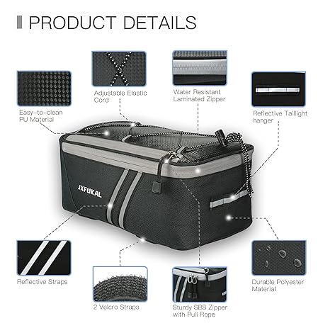 Thông tin sản phẩm JXFUKAL Rear Bike Rack Bag with Rain Cover, 7L/9L/10L/12L Waterproof Bicycle Ebike Saddle Bag Cycling Pannier Trunk Carrier with Reflector & Adjustable Cord for Commuter Travel Outdoor