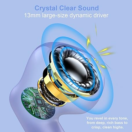 Thông tin sản phẩm Jxrev Wireless Earbuds, Bluetooth 5.3 Headphones in Ear with Noise Cancelling Mic, Earbuds Stereo Bass, IP7 Waterproof Sports Earphones, 32H Playtime USB C Charging Ear Buds Purple for Android iOS