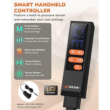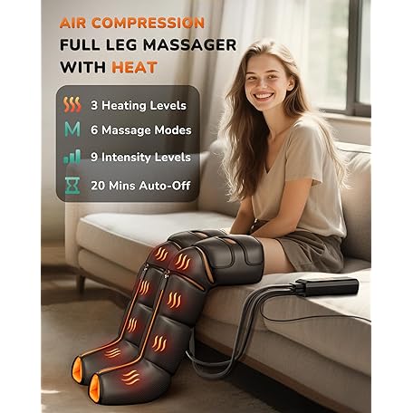 JZBRAIN Leg Massager with Heat and Compression : Foot and Calf Massager for Circulation and Pain Relief, Sequential Compression Boots with 6 Modes, 9 Intensity, 3 Heat - Gifts for Mom, Dad, Him, Her