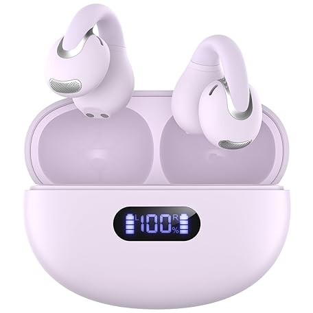 Sản phẩm Jzones Open Ear Clip Wireless Earbuds Bluetooth 5.4, Lightweight Comfort Sports Bone Conduction Headphones Built-in Mic for Clear Audio, Stable Fit Earphones 24H Play-Purple đang được bán với giá ưu đãi là $68.4193 tại nước Mỹ.