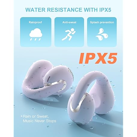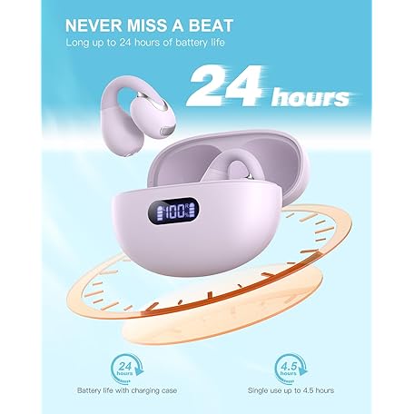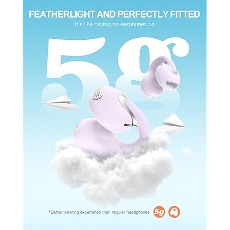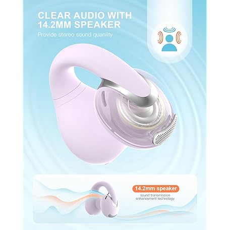 Thông tin sản phẩm Jzones Open Ear Clip Wireless Earbuds Bluetooth 5.4, Lightweight Comfort Sports Bone Conduction Headphones Built-in Mic for Clear Audio, Stable Fit Earphones 24H Play-Purple