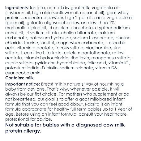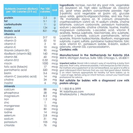 Thông tin sản phẩm Kabrita Goat Milk-Based Infant Formula Powder with Iron, DHA, ARA & Prebiotics, for Infants 0–12 Months, Non-GMO, 28 oz