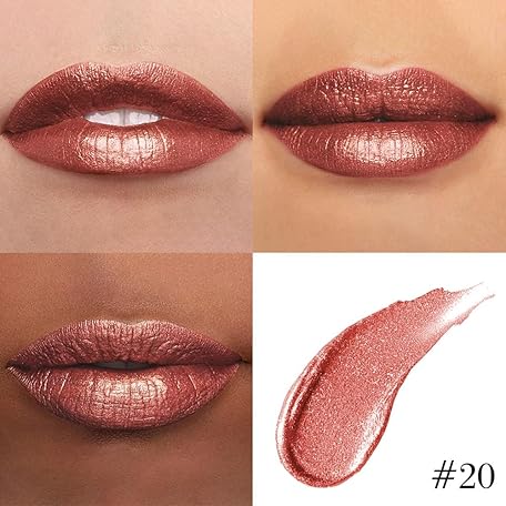• Kaely 2-in-1 Copper Metallic Lipstick and Lip Liner Makeup, Shimmer Liquid Metallic Lipsticks for Women, Glitter Lip Gloss Stain Long Lasting Waterproof Smudge Proof 24 Hour, Vegan & Cruelty-Free, 20