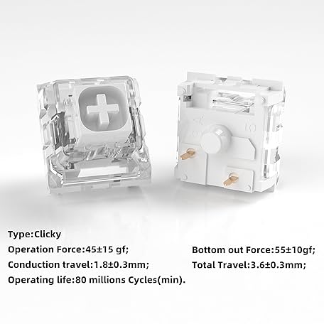 Thông tin sản phẩm Kailh Box White Mechanical Keyboard Switches,3-Pin 45gf Clicky/Speed Typing/Gaming/Waterproof Switches(108Pcs,Kailh Box White)