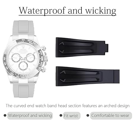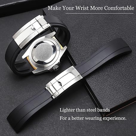 Thông tin sản phẩm KaiMai 20mm Curved End Rubber Watch Band for Rolex Submariner,for Daytona,for Ghost,for Yachtmaster & More,Waterproof, With Deployment Clasp Watch Bands
