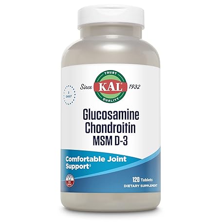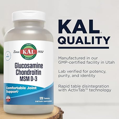 Thông tin sản phẩm KAL Glucosamine Chondroitin MSM D-3, Joint Support Supplement, 1,500 mg of Glucosamine Sulfate, 1,200 mg of Chondroitin Sulfate, 1,000 mg of MSM, Plus Vitamin D3 & Vitamin C, 40 Servings, 120 Tablets