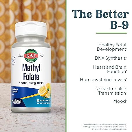 Sản phẩm KAL Methyl Folate 1000 mcg, 5-MTHF Active Form, Folic Acid Supplement, Heart Health, Prenatal, Mood and Brain Support, Vegetarian, Natural Lemon ActivMelt, 60-Day Guarantee, 60 Serv, 60 Micro Tablets đang được bán với giá ưu đãi là $18.6499 tại nước Mỹ.