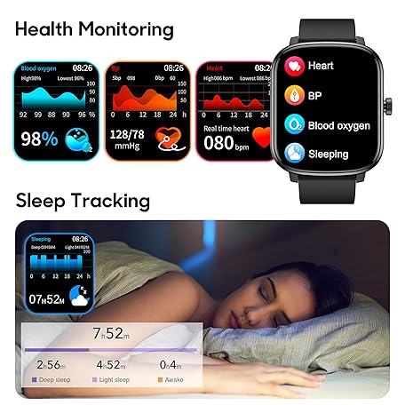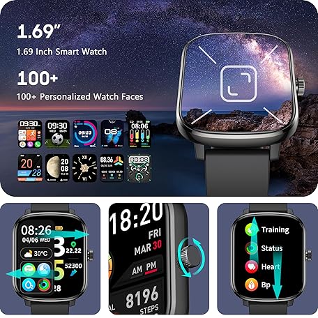 Thông tin sản phẩm KALINCO Smart Watch for Men, 1.69" Fitness Tracker with Heart Rate, Blood Pressure, Blood Oxygen Tracking, Smartwatch with 100+ Sports Modes, Step Counter Compatible with Android iOS