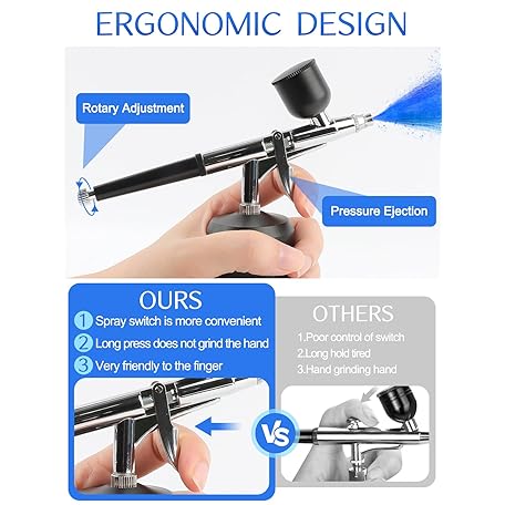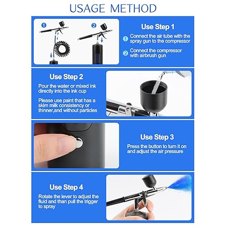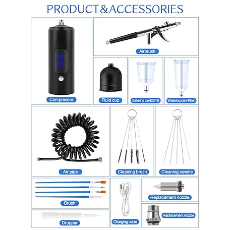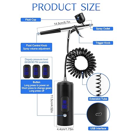 Kalolary 38PSI Airbrush Kit with Compressor, Rechargeable Airbrush Compressor High Pressure Airbrush Compressor for Barber, Nail Art, Cake Decor, Makeup, Model Painting(Black)