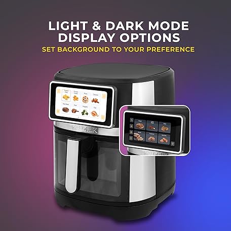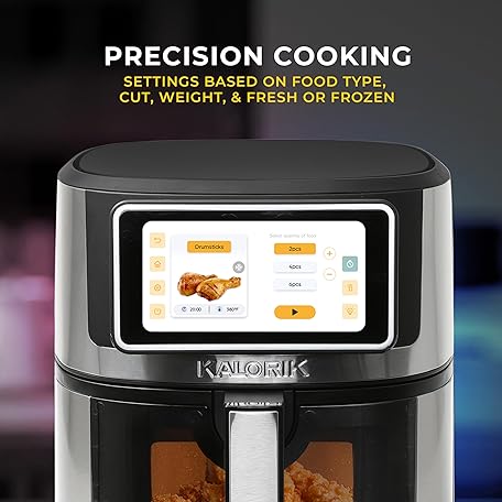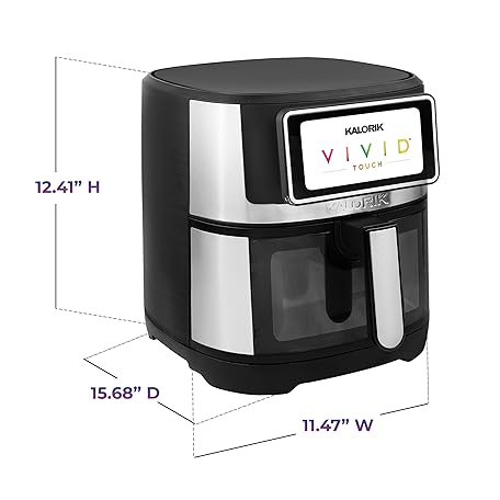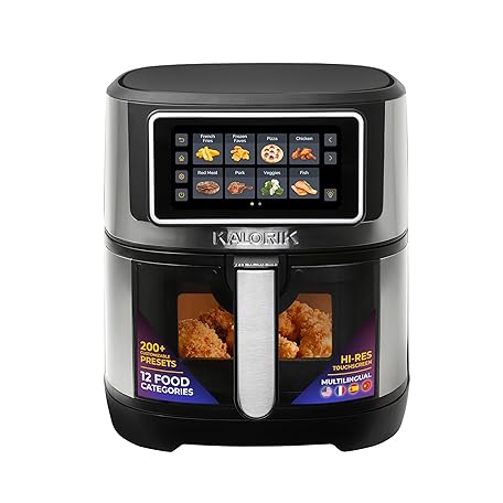 Thông tin sản phẩm Kalorik Air Fryer VIVID TOUCH Series 5 Quart Capacity with High-Resolution Touchscreen 202 Cooking Presets in 12 Food Categories with View Window, 1500-Watts, Stainless Steel