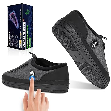 Kamlif Heated Slippers, Kamlif 4 Heating Levels Cordless Foot Warmers for Cold Feet, Cold Weather Cozy Slippers Warm-up Shoes Indoor House Shoes Outdoor Camping with 5000mAh Rechargeable Battery