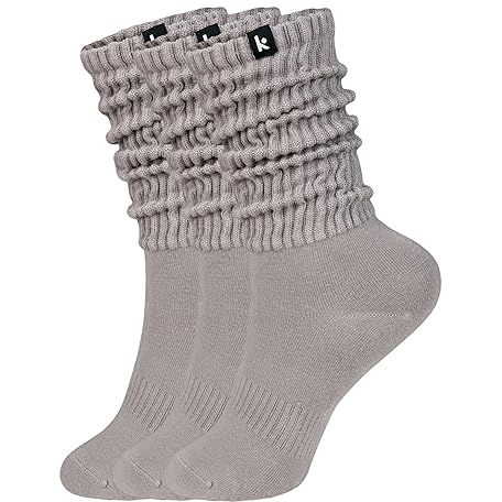 Kamo Fitness Cozy 3-Pair Pack - Scrunch Long Crew Socks for Women, Soft & Breathable Boot and Slouch Socks, Size 5-9