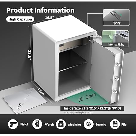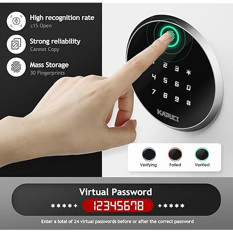 Thông tin sản phẩm KAPUCI Modern Minimalism Design Biometric Fingerprint Touch Screen Safe, 3.38 Cubic Feet Auto-Open Safe Box with Digital Virtual Password,Safety Steel Home Safes for Wardrobe,Office(New Version)