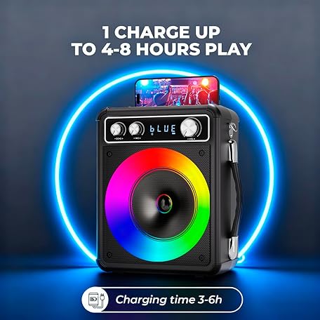 Thông tin sản phẩm Karaoke Machine, Portable Bluetooth Karaoke Speaker with 2 Wireless Microphones, PA System for Adults Kids with LED Lights & Echo Adjustment, Supports TWS/TF/USB/AUX for Home Party