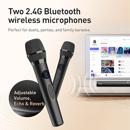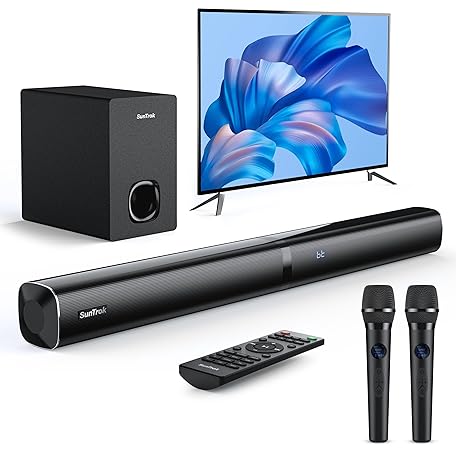 Karaoke Soundbar with Subwoofer for TV: Sound Bar with 2 Wireless Microphones - Home Theater Surround Sound System - Bluetooth Speaker with Remote Supports HDMI ARC/Optical/AUX/USB for TV/PC