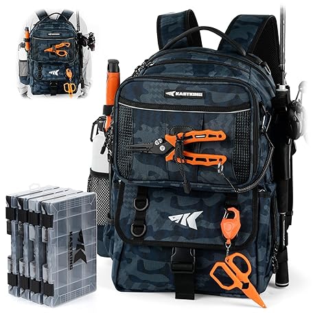 KastKing BaitSpace 50L Fishing Tackle Backpack with Removable Bait Binder,2 Rod Holders Storage Fishing Gear and Equipment