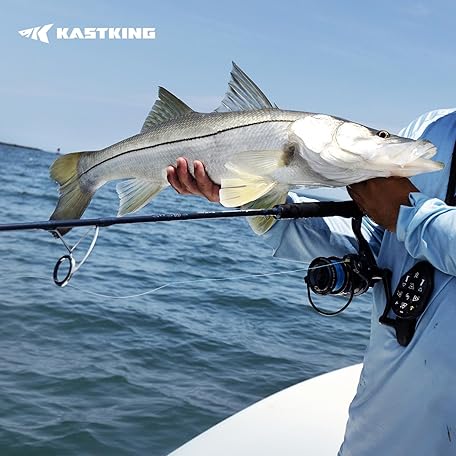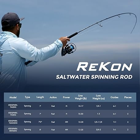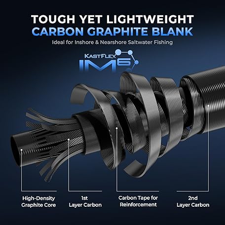 • KastKing ReKon Saltwater Spinning Rod, KastFlex IM6 Carbon Graphite Blank, Zirconium Ceramic Guides, Graphite Locking Reel Seat, Oversized Drop Shot Hook Keeper, 2-Piece PTS, Saltwater Fishing