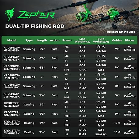 KastKing Zephyr Dual Tip Fishing Rod, Lightweight KastFlex IM6 Graphite Spinning & Casting Rod, Fuji O-Ring Guide, Dual Tips Section for Different Powers, Drop Shot Hook Keeper, EVA Grip
