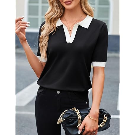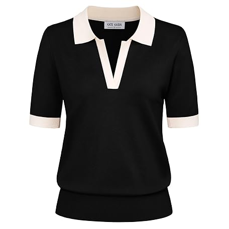 Sản phẩm Kate Kasin Women Short Sleeve Polo Sweater V Neck Knitted Tops Casual Ribbed Shirt Loose Pullover Sweater đang được bán với giá ưu đãi là $21.7891 tại nước Mỹ.