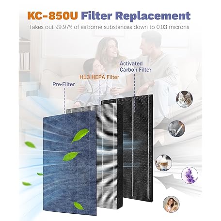 Thông tin sản phẩm KC850U Replacement Filter Compatible With Sharp KC-850U Air Purifier, Part # FZ-C100HFU, With 2 HEPA filters and 1 FZ-C100DFU Activated carbon filter