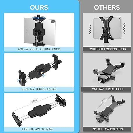 Thông tin sản phẩm KDD iPad and Phone Tripod Mount Adapter with Ball Head, iPad Holder for Tripod, 360 Rotatable Tablet Clamp Mount fits iPad Pro 12.9, Air Mini 3 4, Galaxy Tab, Surface Pro, Selfie Stick(5.3-10.6")