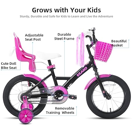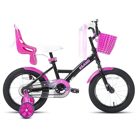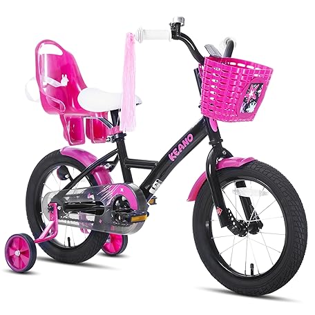 KEANO Zinnia 14 16 20 Inch Kids Bike for Girls Ages 3-10 Years, Girls' Bikes with Training Wheels, Streamers, Basket and Doll Seat, Children Bicycles